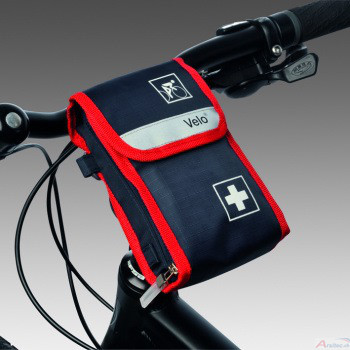Nylontasche mit Reissverschluss, lässt sich am Fahrrad befestigen.