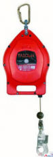 Höhensicherungsgerät mit Drehwirbelhaken und Absturzindikator. Material: Composit. EN 360.