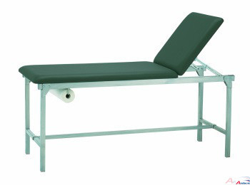 Ruheraumliege mit Polster und verstellbarem Kopfteil.