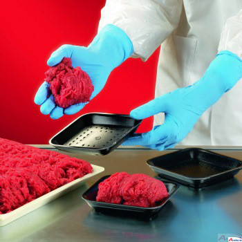 Puderfreie Einweghandschuhe, geeignet für die Lebensmittelindustrie, für den Kontakt mit allen fetthaltigen Nahrungsmitteln.