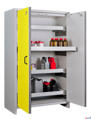 Zur vorschriftsmässigen Lagerung von Gefahrstoffen in Arbeitsräumen gemäss DIN EN 14470-1 und TRbF 20 (Anhang L). In Edelstahl oder Stahlblech lieferbar.