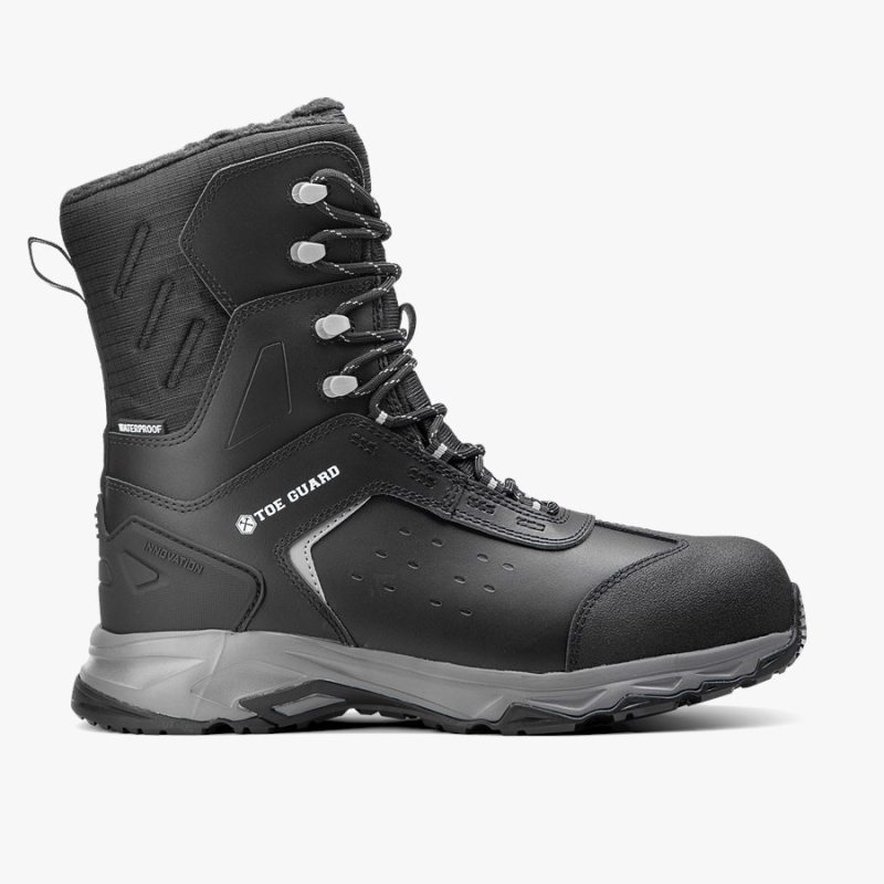 Der Toe Guard Wild WR High ist ein metallfreier Sicherheitsstiefel aus PU-beschichtetem Leder und verfügt über eine breite Passform für optimalen Komfort. Der PU-verstärkte Zehenbereich sorgt für zusätzliche Strapazierfähigkeit. Darüber hinaus ist dieser bequeme Stiefel mit so wenig Nähten wie möglich in kritischen Bereichen sowie mit einem strapazierfähigen Gewebe im Kragenbereich ausgestattet, um eine bessere Passform zu bieten. Die wasserdichte Membran hält Ihren Fuß trocken. Der Toe Guard Wild WR High ist mit einer leichten, hitzebeständigen, ölbeständigen und rutschfesten Gummilaufsohle ausgestattet. Winterfutter aus Polyester. ESD-Funktion gemäß BS EN IEC 61340-4-3:2018.