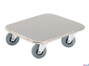 Ladefläche 600 x 500 mm. Gesamtmasse: 600 x 500 x 187 mm. Tragkraft 400 kg. 2 Bock- und 2 Lenkrollen, Gehäuse aus Edelstahl. Beide Lenkrollen mit Edelstahl-Rad-Feststeller. Blau-graue, nicht kreidende Vollgummibandage. Rad-ภx -Breite: 125 x 35 mm.
