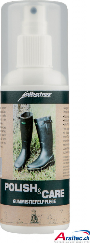 Unser Pflegemittel POLISH & CARE macht deine Gummistiefel langlebiger und lässt sie glänzen! Es kann für die Reinigung und Pflege von Gummistiefeln aus Naturkautschuk, PVC und Nitrilgummi verwendet werden und da es farblos ist, kannst du dieses Produkt auch für alle farbigen Stiefel einsetzen. Für Gummistiefel, an denen du lange Freude haben wirst! zur schonenden Reinigung und Pflege von Gummistiefeln aus Naturkautschuk, PVC und Nitrilgummibei regelmässiger Anwendung verhindert es Materialermüdung und Rissefarblos, daher auch für alle farbigen Stiefel geeignet