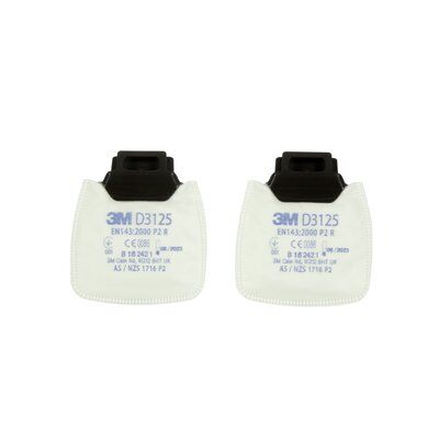 3M™ Secure Click™ Partikelfilter D3125, P2 R, zum Schutz vor festen und flüssigen Partikeln (Einsatzlimit: 10-facher Grenzwert). Zur Verwendung mit der Halbmasken Serie Secure Click™ HF-800(SD).
