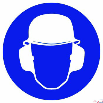 Gehör- und Kopfschutz benutzen, Ø 200mm, nachleuchtend, Selbstklebefolie