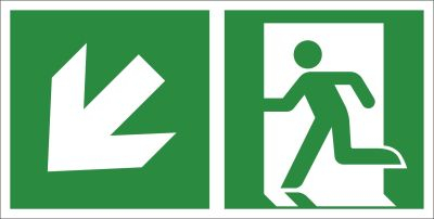» » » Rettungsweg links abwärts, 400x200mm, nachleuchtend, Aluminium