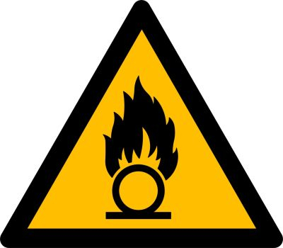 Warnung vor brandfördernden Stoffen, 200x200mm, Aluminium