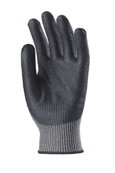 Material: gestrickt mit Glasfaser/Elasthan/SynthetikfasernHandfläche: beschichtet mit schwarzem NitrilStulpe: elastisches GestrickWiderstandsfähigkeit: SchnittNorm: EN 420, EN 388Qualität: hochwertigGrösse: 7