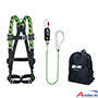 Miller H-Design Einpunkt Starterset. Bestehend aus elastischem Miller H-Design Einpunkt Auffanggurt - Größe 2 (ref 1032856) mit Standartverschlüssen und kantengetestetem Bandfalldämpfermit Kernmantelseil, Länge 2 m(ref 1032411). Karabiner: Trilock und Gerüsthaken (65 mm). Verpackt im schwarzen Miller Rucksack.